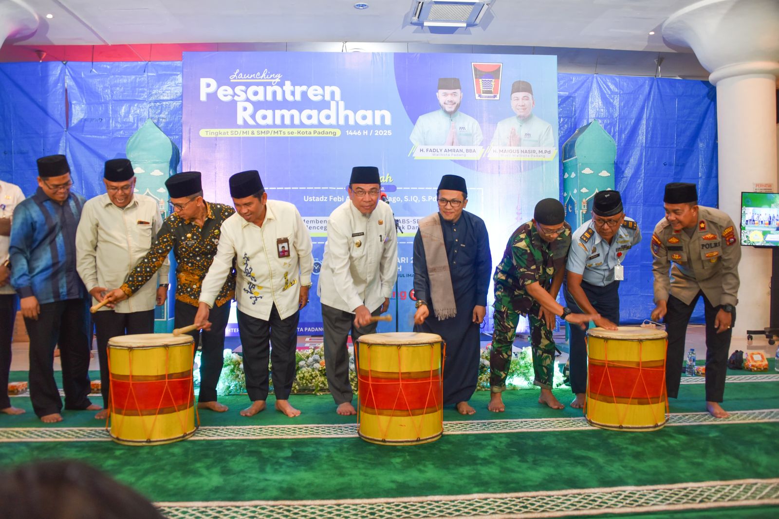 Launching Pesantren Ramadhan 1446H dengan tema “Membentuk Karakter Berbasis ABS-SBK dalam Mencegah Perilaku Negatif Anak dan Remaja” ini ditandai dengan pemukulan gendang tabuh oleh Wawako Maigus Nasir bersama unsur Forkopimda Kota Padang, di Masjid Agung Nurul Iman, Jumat (21/2/2025).