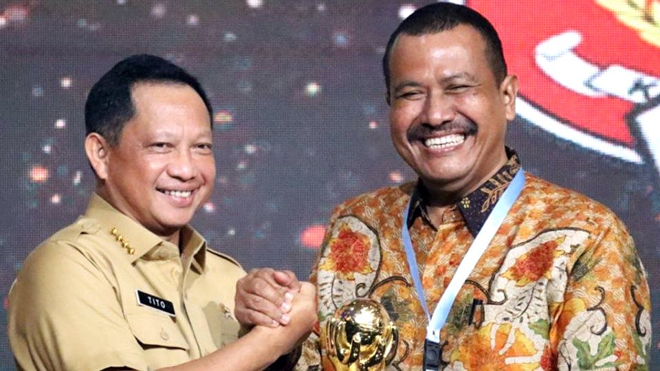Wakil Wali Kota Pariaman, Mardison Mahyuddin menerima langsung piala penghargaan UHC oleh Wakil Presiden Indonesia yang diserahkan oleh Menteri Dalam Negeri Tito Karnavian di Gedung Balai Sudirman Jakarta, Selasa (14/03/2023) lalu.