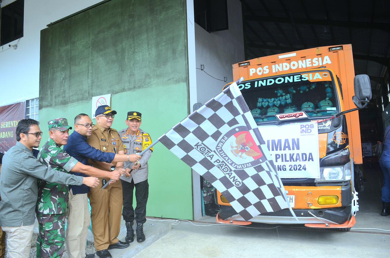 Langgam.id – Penjabat (Pj) Wali Kota Padang Andree Algamar bersama unsur Forkopimda dan Ketua Komisi Pemilihan Umum (KPU) Kota Padang Dorri Putra, melepas secara langsung pendistribusian logistik Pemilihan Kepala Daerah (Pilkada) Serentak 2024 dari Gudang Logistik KPU Kota Padang, Jalan Bypass Kilometer 19, Selasa (26/11/2024).