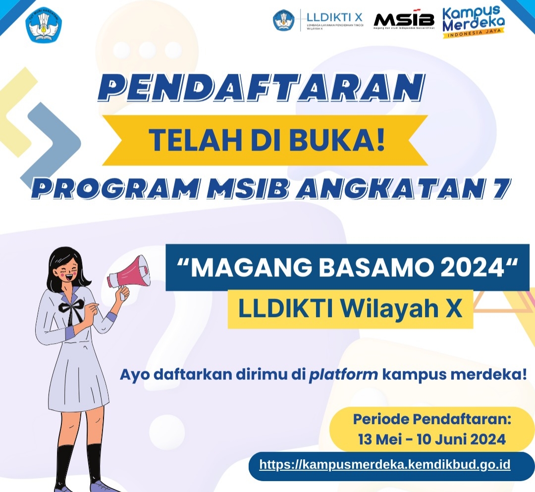 Langgam.id – Program Magang dan Studi Independen Bersertifikat (MSIB) angkatan 7 Kemendikbudristek sudah dibuka. Lembaga Layanan Pendidikan Tinggi (LLDIKTI) Wilayah X melalui “Program Basamo” menawarkan 46 kuota magang bagi mahasiswa di seluruh Indonesia.