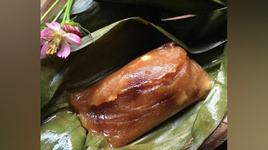 Kue berwarna kecoklatan ini sekilas mirip kue khas betawi ketimus, namun aroma kue ini terasa lebih menggoda ketika baru saja melalui proses pemanggangan. Paduan rasa manis dan sedikit gurih dengan tekstur yang kenyal menjadikan kue ini terasa begitu nikmat saat lidah kita merasakannya.
