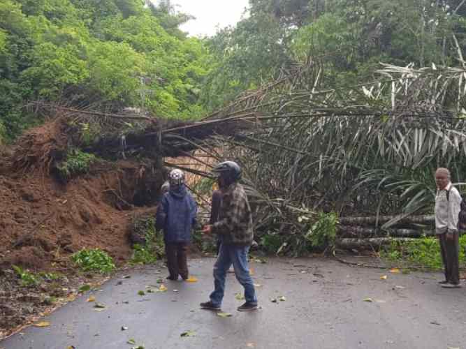 Tebing setinggi 4 meter dilaporkan terban hingga menutup badan jalan sepanjang 3 meter. Beruntung, peristiwa ini tidak menelan korban jiwa. Material longsor juga menumbangkan sebatang pohon yang membentang ke tengah jalan.