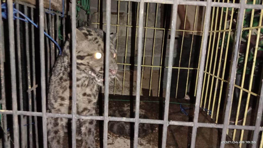 Langgam.id-Seekor satwa langka dan dilindungi jenis macan dahan dengan nama latin neofelis diardi diardi dievakuasi dari rumah warga di Rimbo Batu, Jorong Koto Padang, Nagari Anam Koto Utara, Kecamatan Kinali, Kabupaten Pasaman Barat, Sumatra Barat (Sumbar) Rabu (28/04/2021).