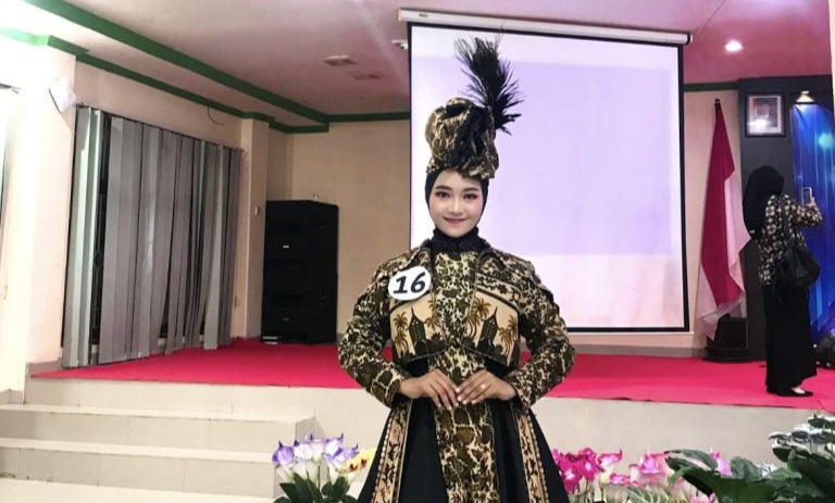 Dalam ajang tersebut, Geni sapaanya menampilkan kostum yang menggabungkan unsur-unsur tradisional dengan sentuhan modern, kolaborasi dari batik tanah Liek menghasilkan tampilan yang memukau dan unik.