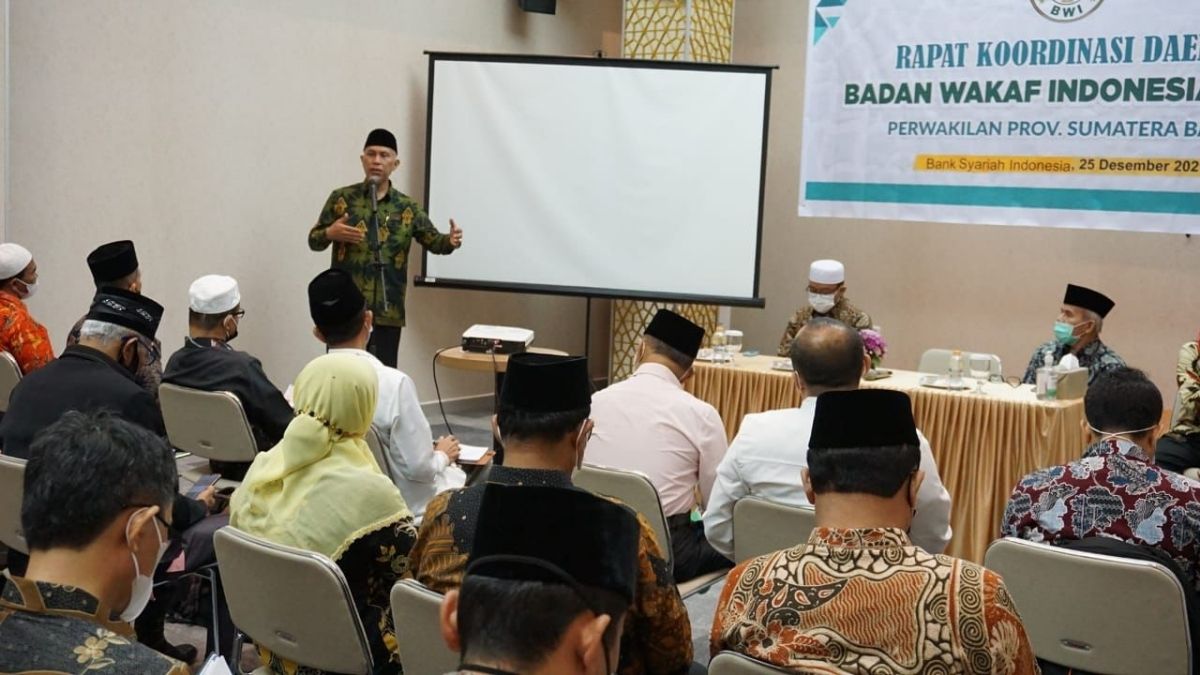Hal itu disampaikan Mahyeldi saat membuka Rapat Koordinasi Badan Wakaf Indonesia (BWI) Sumbar di aula Bank Syariah Indonesia Padang, Sabtu (25/12/2021).
