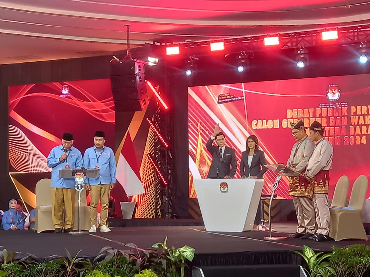 Langgam.id – Debat publik pertama pasangan calon Gubernur dan Wakil Gubernur Sumatera Barat Pemilihan 2024 berlangsung di Hotel Mercure, Kota Padang, Rabu (13/11/2024) malam. Dua pasangan calon, Mahyeldi – Vasco Ruseimy (nomor urut 01) dan Epyardi Asda – Ekos Albar (nomor urut 02), beradu gagasan tentang pemberdayaan perantau Minang dalam meningkatkan sumber daya manusia (SDM) Sumbar.