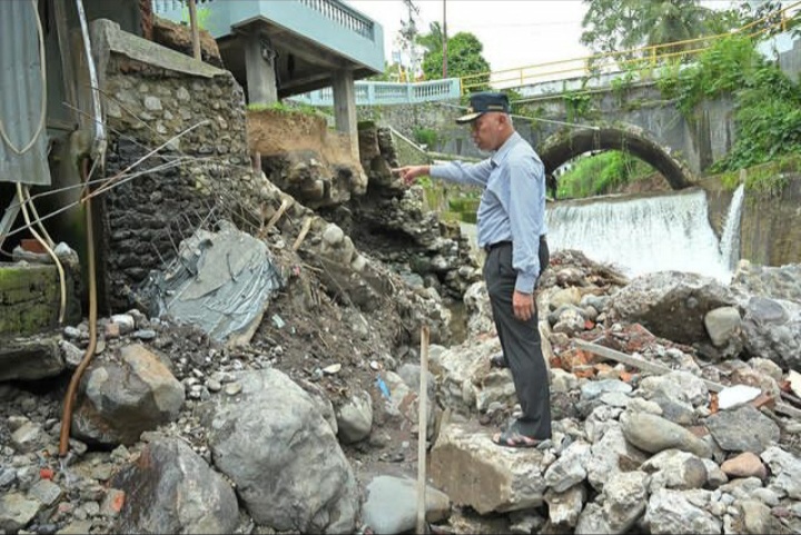 Yaitu, terbannya dinding jembatan dan pembatas sungai di samping Masjid Al Ikhlas, Simpang Manunggal, Dusun Limo Kaum.