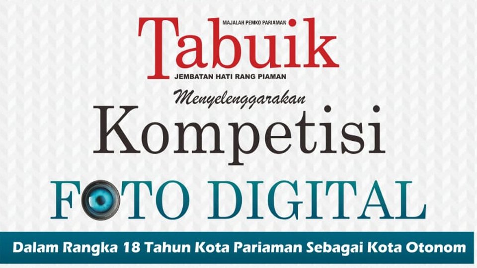 Langgam.id – Dalam rangka memeriahkan peringatan Hari Ulang Tahun (HUT) Ke-18 Tahun Kota Pariaman sebagai Kota Otonom, Majalah Pemerintah Kota Pariaman “TABUIK” menggelar Kompetisi Foto Digital bagi kamu yang hobby foto di smartphone, mirrorless ataupun DSLR.