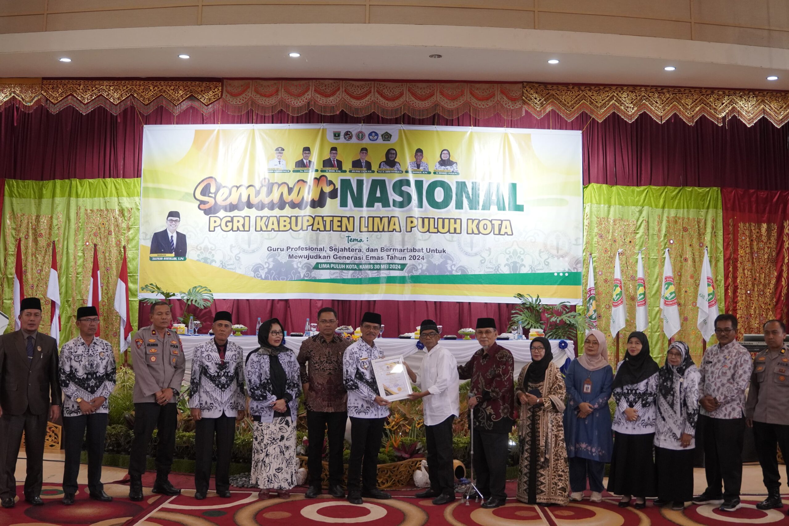 Penghargaan tersebut diserahkan oleh Bupati Limapuluh Kota Safaruddin Dt Bandaro Rajo saat acara seminar nasional yang digelar PGRI Limapuluh Kota di auditorium Politani Payakumbuh, Kamis lalu (30/5/2024).