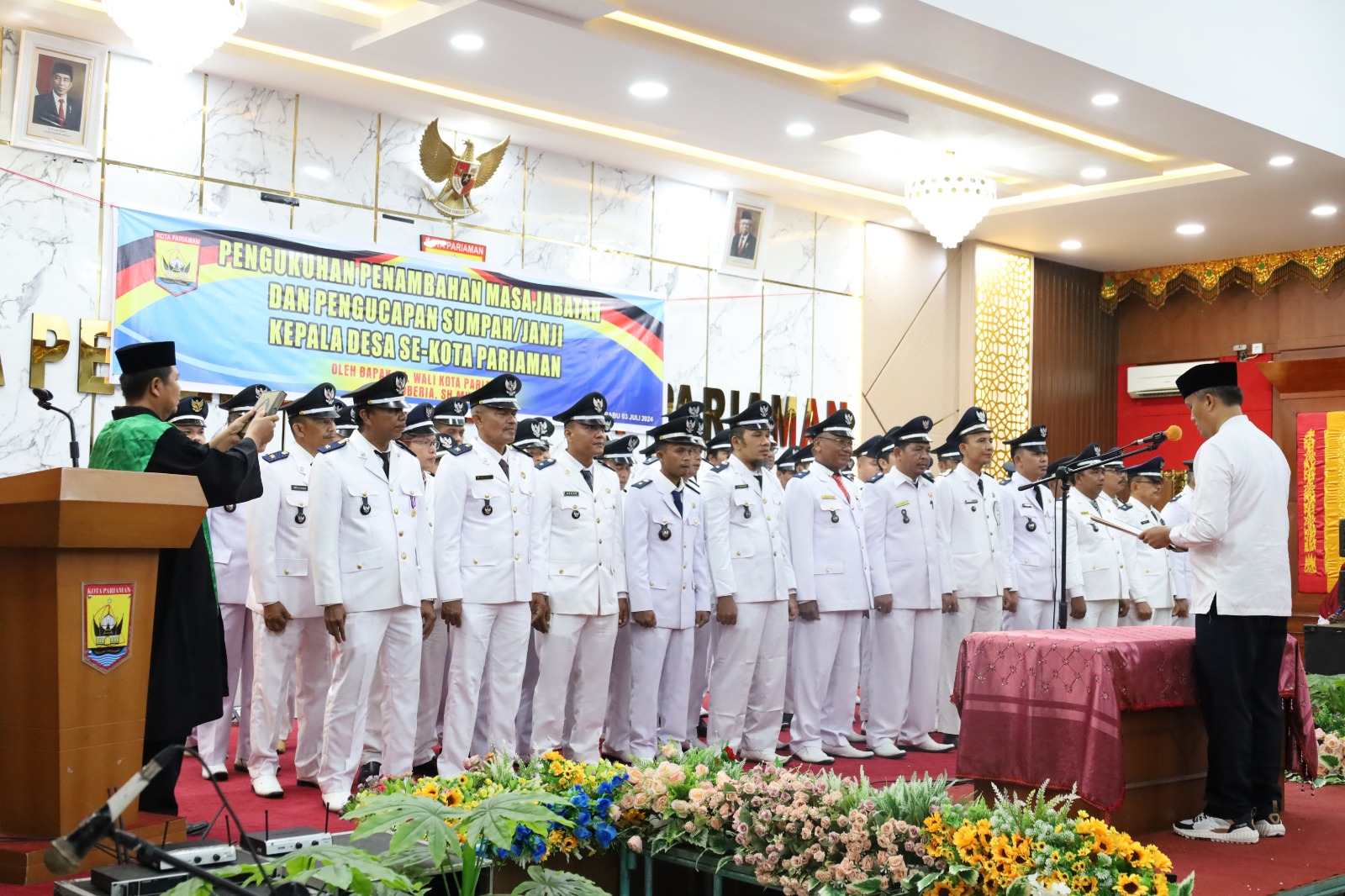 “Sebanyak 48 kepala desa se-Kota Pariaman dikukuhkan dan diambil pengucapan sumpah/janji penambahan masa jabatan yang awalnya 6 tahun, menjadi 8 tahun, hal ini mengacu pada Undang-Undang Nomor 3 Tahun 2024,” kata Roberia dalam keterangan tertulis Pemko Pariaman.