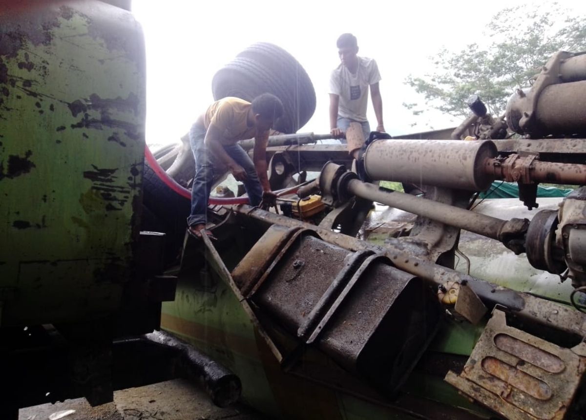 Langgam.id – Truk CPO yang terguling di Panorama 1 Sitinjau Lauik hingga Rabu (13/4/2022) siang belum juga diangkat. Saat ini masih berlangsung proses pemindahan muatan minyak sawit mentah dari tangki ke truk lain.