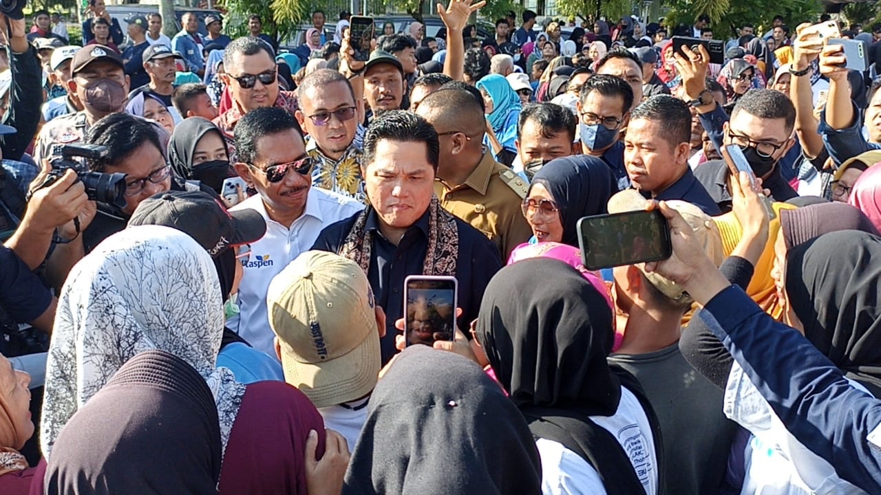 Langgaminfo – Ribuan massa pendukung Erick Thohir yang memadati pelataran parkir VIP Bandara Internasional Minangkabau (BIM) pagi ini, Selasa (20/12/2022) ramai-ramai memberikan dukungan supaya Erick menjadi calon presiden. Mereka menilai Erick lebih layak menjadi presiden ketimbang wakil presiden.