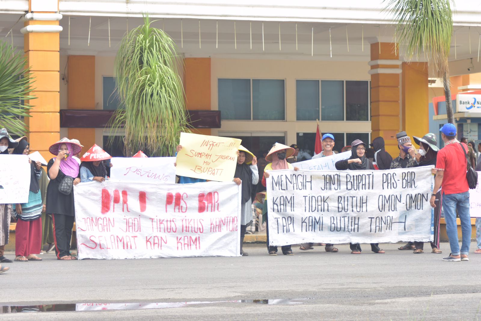 Langgam.id – Masyarakat petani pejuang Nagari Kapa melakukan aksi demonstrasi ke kantor Bupati dan DPRD Kabupaten Pasaman Barat, Rabu (3/4/ 2024). Mereka menuntut janji Bupati Pasaman Barat yang disampaikan kepada masyarakat pada 18 Desember 2021 untuk segera menyelesaikan konflik lahan antara masyarakat petani pejuang Nagari Kapa dengan Perusahaan (PT. PHP I).