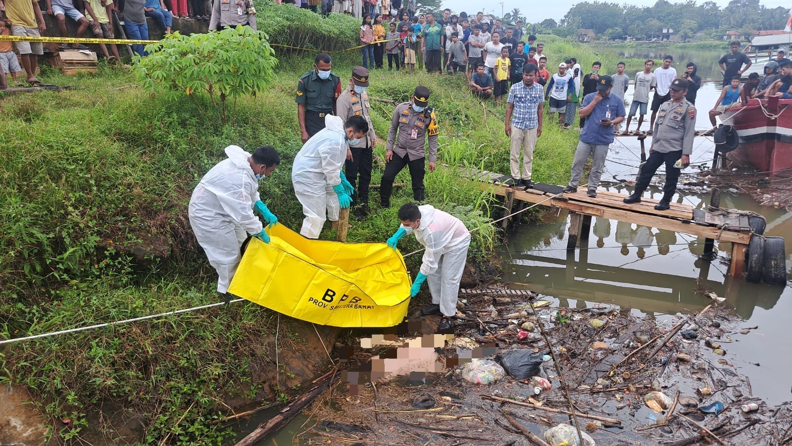 Penemuan mayat tak utuh tersebut pertama kali ditemukan nelayan saat membersihkan kapalnya. Posisi mayat berada di tepi aliran sungai tidak jauh dari kapal nelayan.