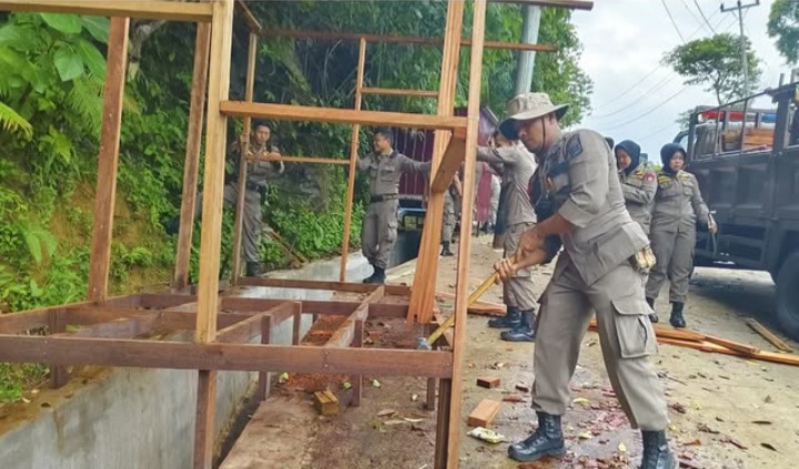 “Bangunan liar tersebut berdiri di atas bahu jalan yang berada persis di tanjakan dan belokan jalan, tentu dapat menganggu kelancaran lajunya kendaraan yang melewati kawasan tersebut dan dapat membahayakan pengendara serta pemilik bangli tersebut,” ujar Kasatpol PP Padang, Chandra Eka Putra.