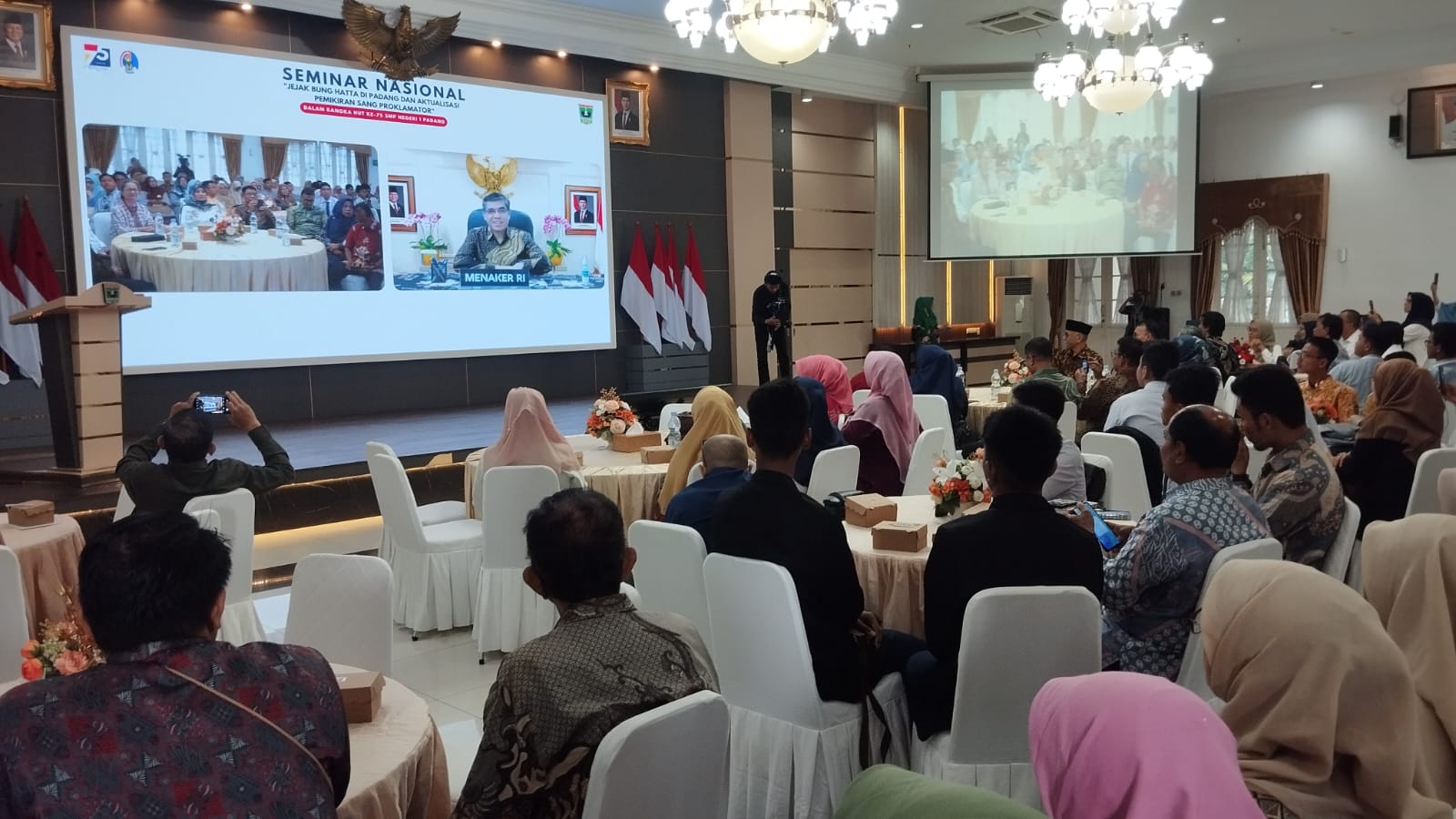 Langgam.id – Menteri Ketenagakerjaan (Menaker) Republik Indonesia Prof Yassierli membuka secara resmi Seminar Nasional “Jejak Bung Hatta di Padang dan Aktualisasi Pemikiran Sang Proklamator” yang digelar secara luring dan daring di Auditorium Istana Gubernur Sumbar, Sabtu (22/2/2025).