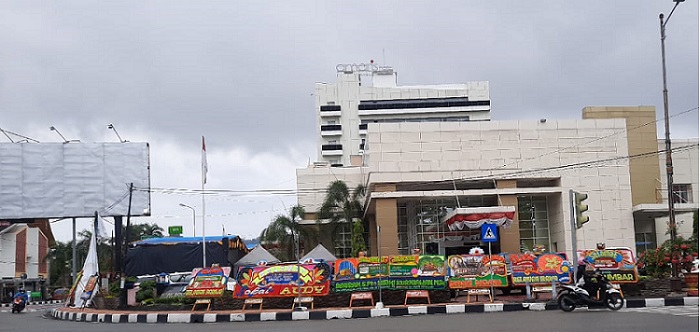 Langgam.id-Posko utama pemenangan calon gubernur dan wakil gubernur nomor urut 4 Mahyeldi-Audy Joinaldy dipenuhi papan bunga ucapan selamat sejak Kamis (10/12/2020) pagi. Papan bunga datang dari berbagai pihak sehari pasca pencoblosan.