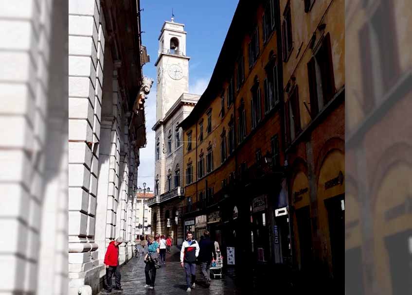 Foto ini saya ambil saat melewati jalanan dari Stazione d Pisa Centrale, Italia beberapa tahun silam. Untuk menuju Menara Pisa, jalan kaki adalah pilihan paling tepat sembari melihat keindahan kota, ada yang berjualan di toko, ada juga yang berjualan kaki lima, persis sama dengan Bukittinggi. Dua kota yang tercatat sama-sama kota tua, sama-sama mempertahankan “kesempatan” untuk melihat awan, langit, dan sebuah Jam Besar yang menjadi penanda waktu.