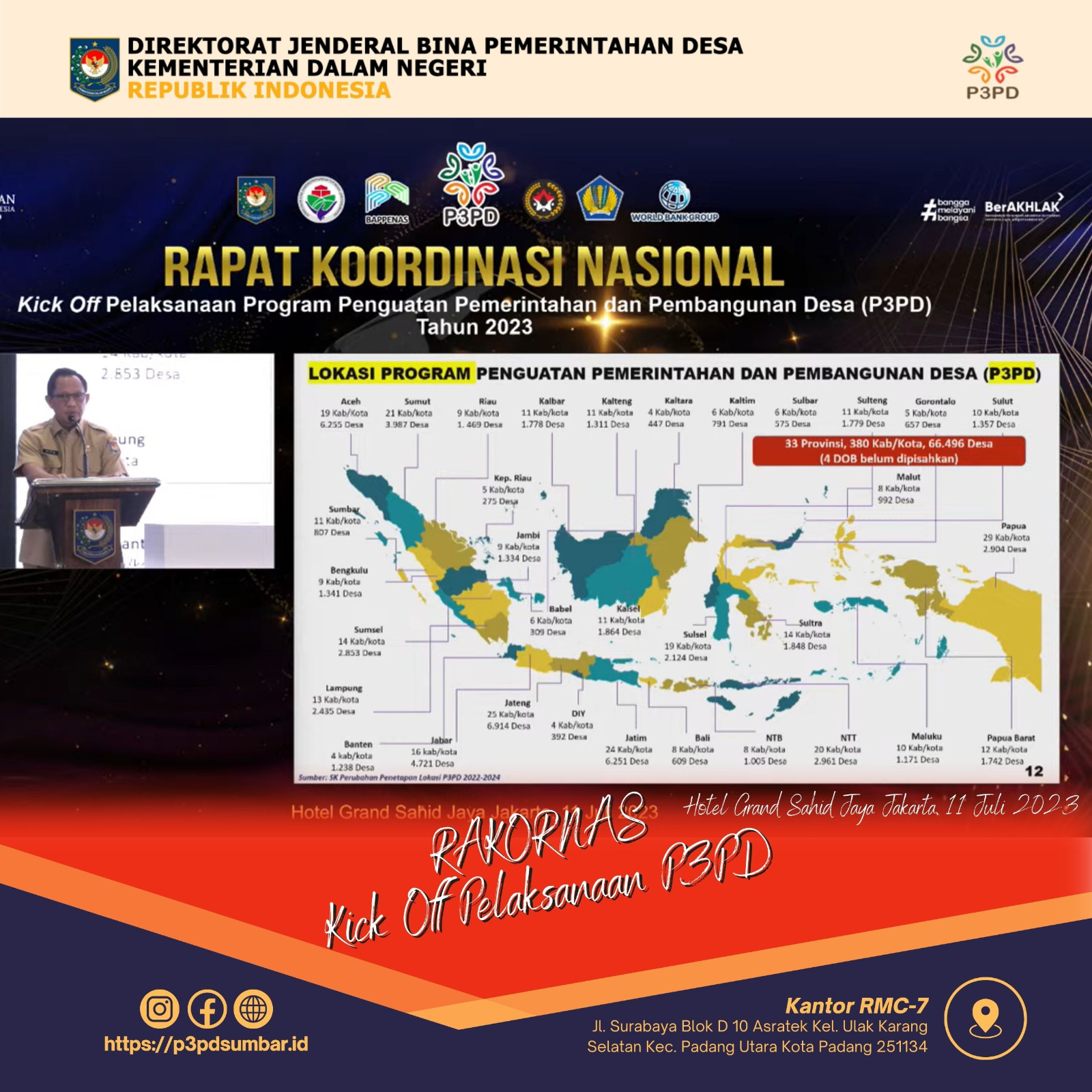 “Desa harus menjadi sentra-sentra ekonomi yang baru, tidak hanya mengandalkan kota. Meskipun saat ini penduduk kota kita menurut data Dukcapil sudah mulai lebih banyak di kota daripada di desa, lebih kurang 51-52 persen di kota, tapi masih 40-an persen, 48-49 persen ada di desa. Itu kondisi sekarang,” katanya pada Rapat Koordinasi Nasional (Rakornas) Kick Off Pelaksanaan Program Penguatan Pemerintahan dan Pembangunan Desa (P3PD) Tahun 2023 di Hotel Grand Sahid Jaya, Jakarta.