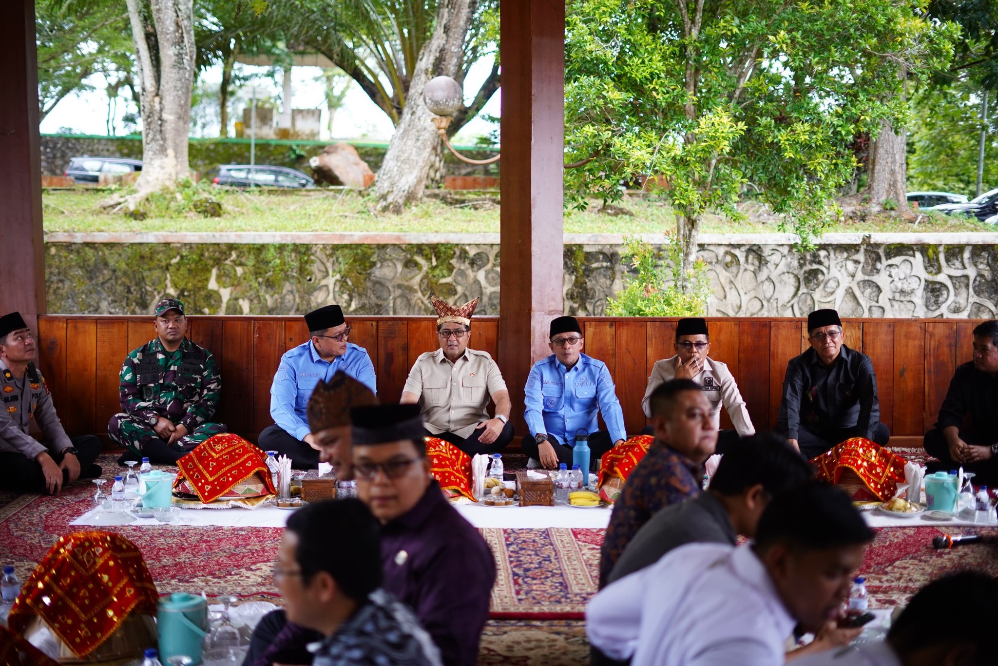InfoLanggam – Menteri Ekonomi Kreatif (Menekraf) Teuku Riefky Harsya menikmati makan bajamba bersama Bupati Eka Putra dan Wakil Bupati (Wabup) Tanah Datar Ahmad Fadly di Istano Basa Pagaruyung, Minggu (23/11/2025).