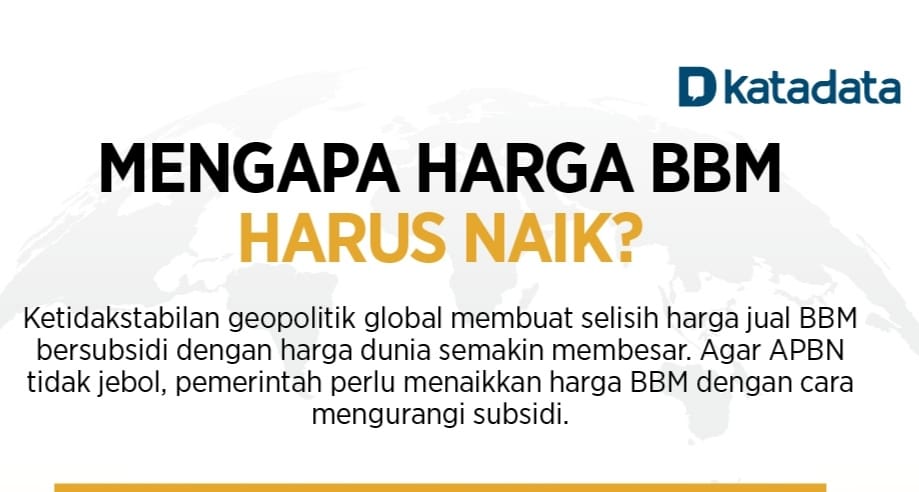 Ketidakstabilan geopolitik global memicu lonjakan harga minyak dunia. Kondisi ini mendorong selisih harga minyak dunia dengan harga jual bahan bakar minyak (BBM) bersubsidi di Indonesia semakin besar. Jika tidak diatasi, maka Anggaran Pendapatan Belanja Negara (APBN) akan jebol dan berpotensi mengguncang perekonomian nasional.