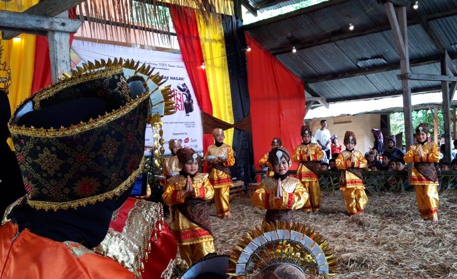 dalam kegiatan Pentas Seni Anak Nagari yang digelar di Nagari Sungai Landia Kecamatan IV Koto, Agam, Sumatra Barat pada Minggu, 3/3/2019.