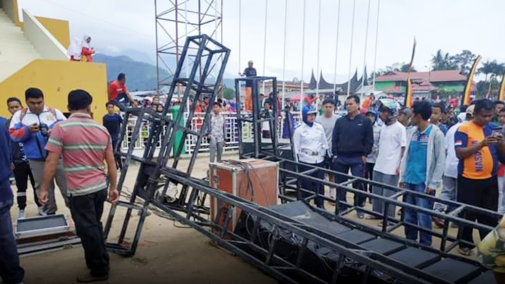 Langgam.id – Dua pekan sudah insiden jatuhnya rangkaian sound system dan speaker di Lapangan GOR Khatib Sulaiman, Kota Padang Panjang, Sumatra Barat (Sumbar) berlalu. Namun, kasus yang menewaskan seorang murid sekolah dasar bernama Rara Rizkyatul Hanif (12 tahun) belum menemukan titik terang, tersangka hingga saat ini belum ditetapkan.