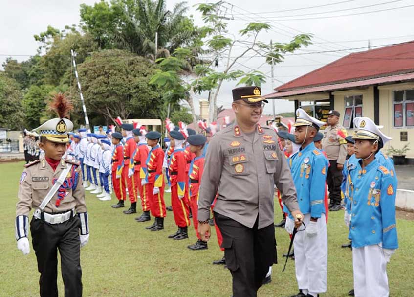 Kapolres Dharmasraya, AKBP Nurhadiansyah, memimpin upacara persiapan lomba yang diikuti perwakilan SD dari 11 Kecamatan se-Kabupaten Dharmasraya di halaman Mapolres setempat Selasa (03/01/2023), serta turut dihadiri kepala sekolahnya masing masing.