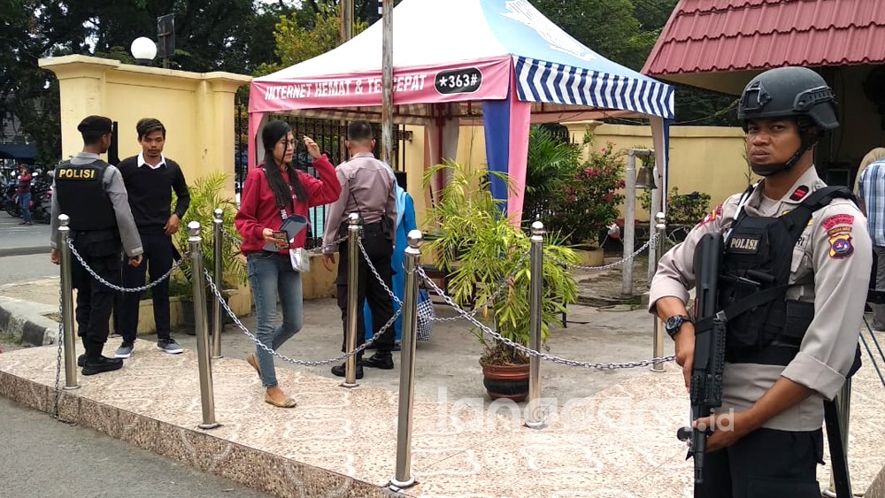 Di dalam Mapolresta Padang, ada juga delapan personel Brimob lengkap menggunakan senjata laras panjang. Personel Brimob ini memang sengaja diperuntukkan untuk mem-backup pengaman.