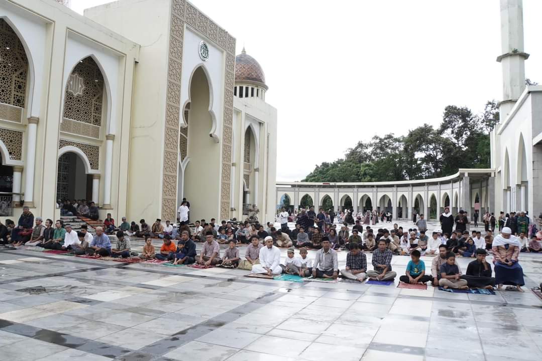 Shalat Id yang seyogyanya dilaksanakan di Lapangan Bancalaweh namun dialihkan ke masjid karena hujan deras malam harinya yang menyebabkan lapangan basah. Masjid Agung Manarul ‘Ilmi Islamic Centre, menjadi salah satu pilihan yang ramai dikunjungi masyarakat. (*/Fs)