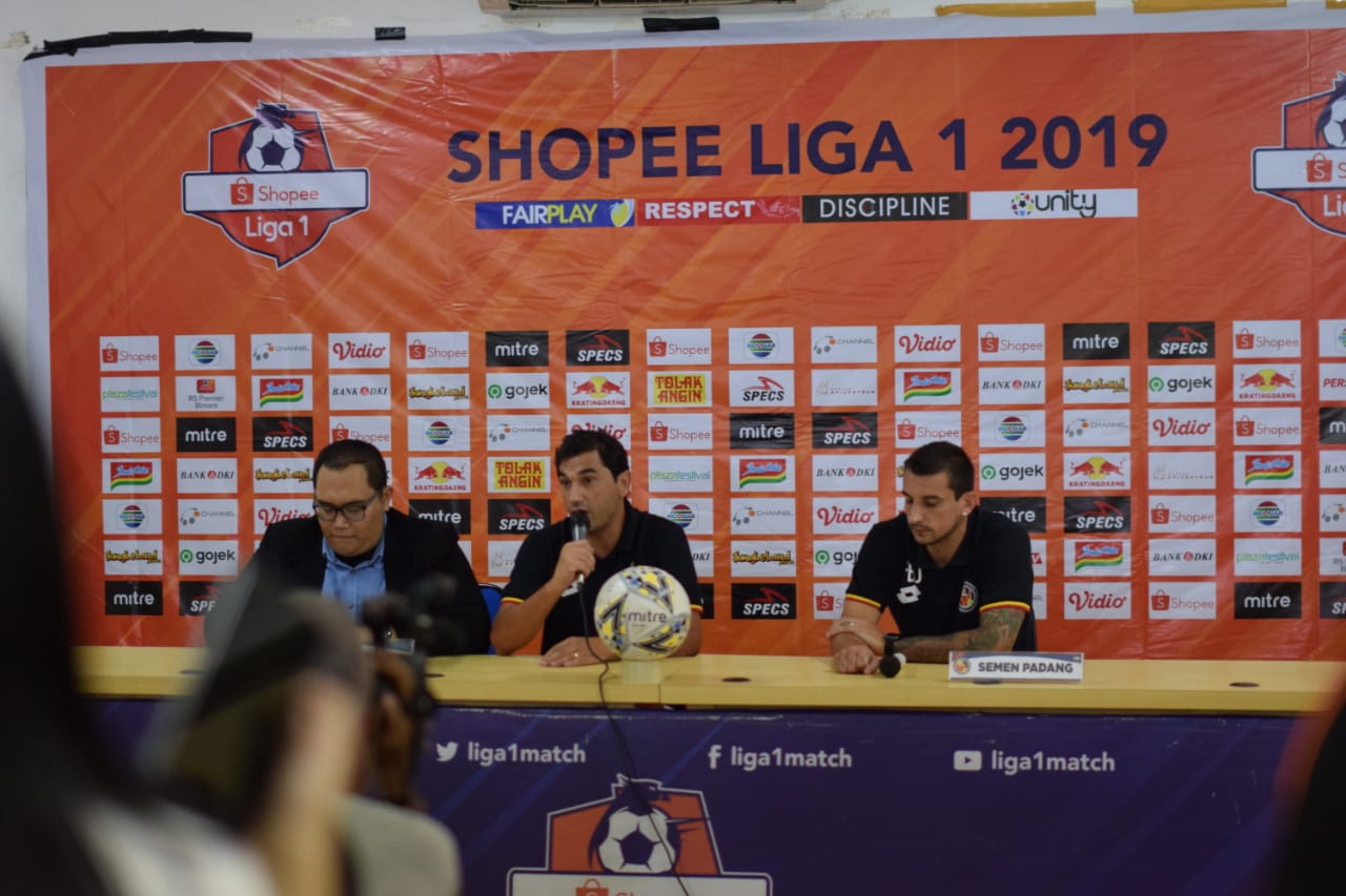 Pelatih Kepala Semen Padang FC Eduardo Almaida saat menggelar konferensi pers jelang laga melawan Persija Jakarta (Foto: MO Semen Padang FC)