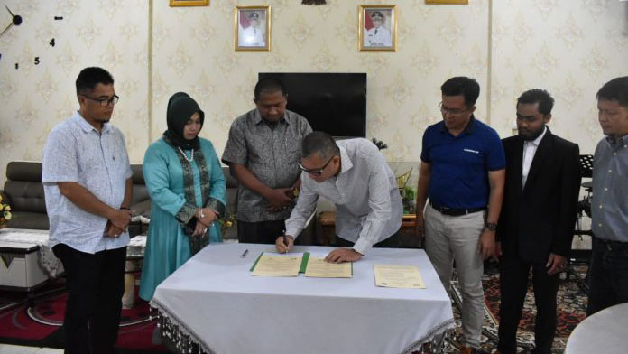 Wali Kota Riza Falepi menandatangi Mou dengan Direktur Perwakilan Indonesia DPUKM Dr (Cn) Teuku Eddy Faisal Rusydi di Payakumbuh, Sabtu (7/3/2020). Sementara, MoU kedua Pembina Koperasi Sentra Randang Saiyo Wawako Erwin Yunaz dengan Dr. Rizayati dari PT. Imza Risky Jaya Jakarta.