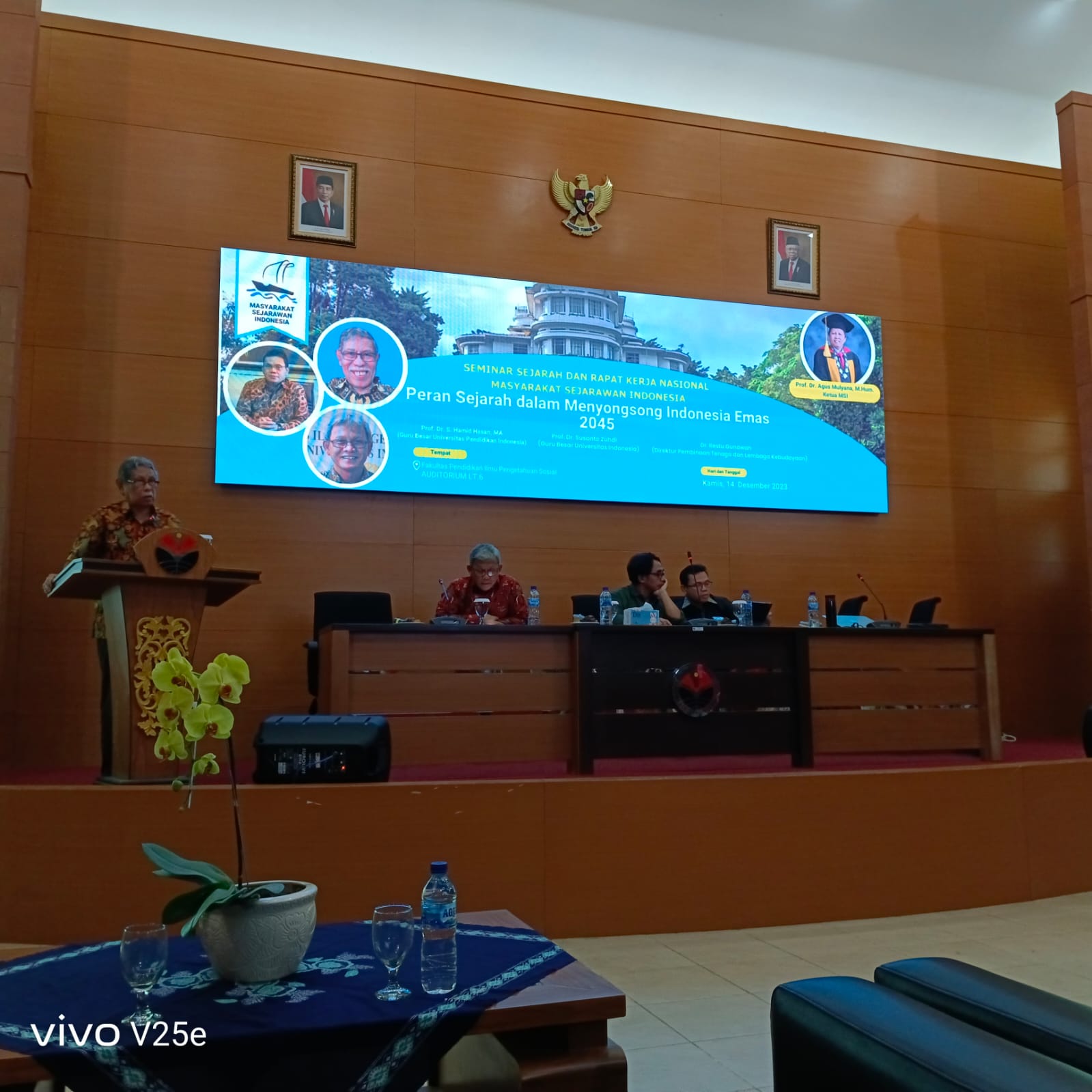 Kegiatan seminar sejarah menghadirkan tiga narasumber, yakni Prof. Dr S Hamid Hasan (Universitas Pendidikan Indonesia), Prof Dr Susanto Zuhdi (Universitas Indonesia), dan Dr Restu Gunawan (Direktur Pembinaan Tenaga dan Lembaga Kebudayaan, Kemendikbudristek). Kegiatan dipandu oleh Dr Agus Suwignyo dari Universitas Gadjah Mada.