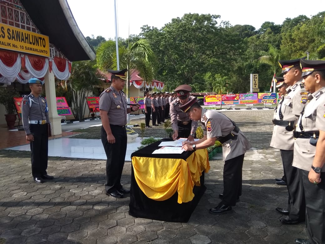 PalantaLanggam – Kepolisian Resor (Polres) Sawahlunto menggelar serah terima jabatan dua pejabat dilingkup Polres tersebut, Rabu (3/7/2019).