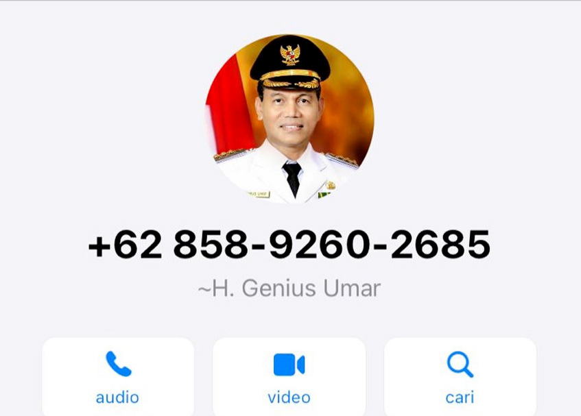 Nama dan foto yang digunakan nomor tersebut di aplikasi WhatsApp yaitu nama Wali Kota Pariaman, H. Genius Umar dan menggunakan foto Genius Umar.