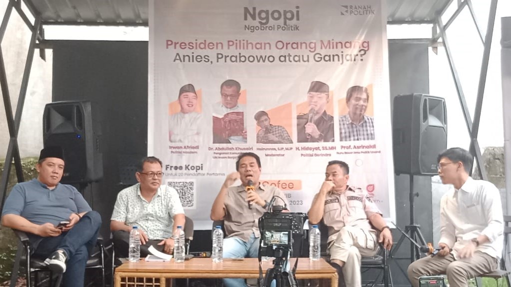 “Kalau kita lihat itu akan butuh energi yang besar dan kerja keras,” katanya saat Ngobrol Politik (Ngopi) yang diadakan Ranah Politik dengan tema “Presiden Pilihan Orang Minang Anis, Prabowo atau Ganjar”, Rabu (18/1/2023) di Kafe V-Coffee, Padang.