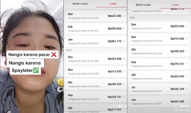 “Nangis karena pacar (gambar silang), nangis karena spaylater (gambar ceklis),” tulis wanita itu dalam keterangan video yang diunggahnya.