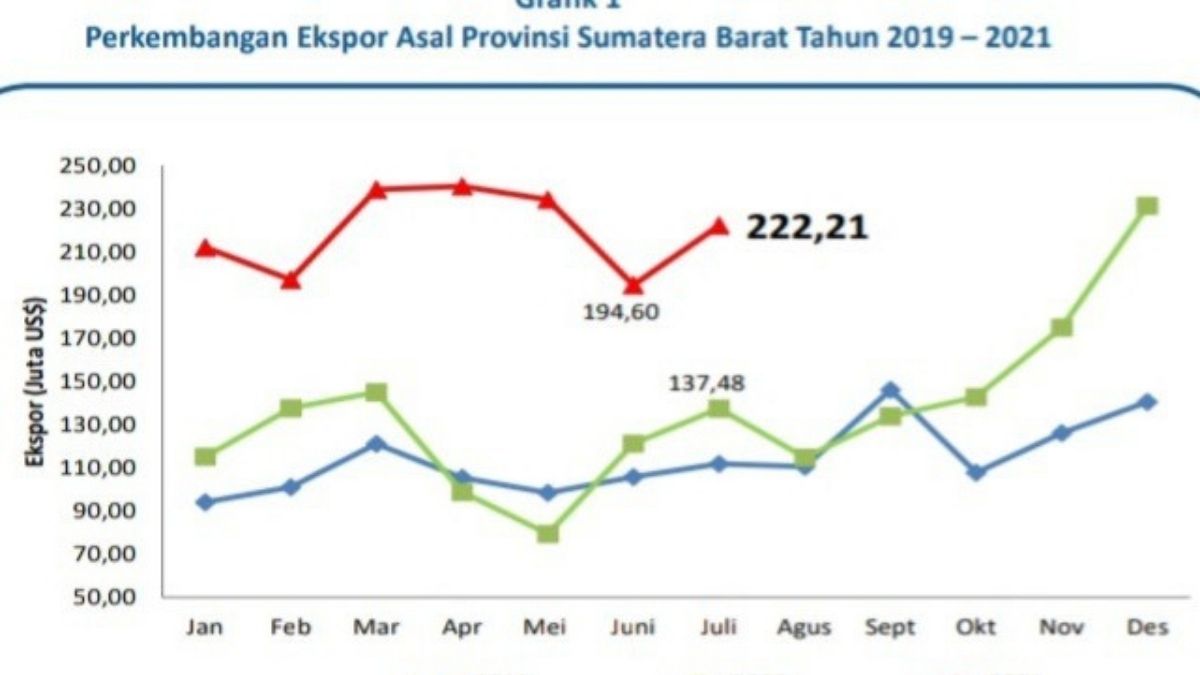 Langgam.id – Nilai ekspor Sumatra Barat (Sumbar) pada Juli 2021 mencapai US$222,21 juta. Ini berarti terjadi peningkatan sebesar 14,19 persen dibanding ekspor Juni 2021.