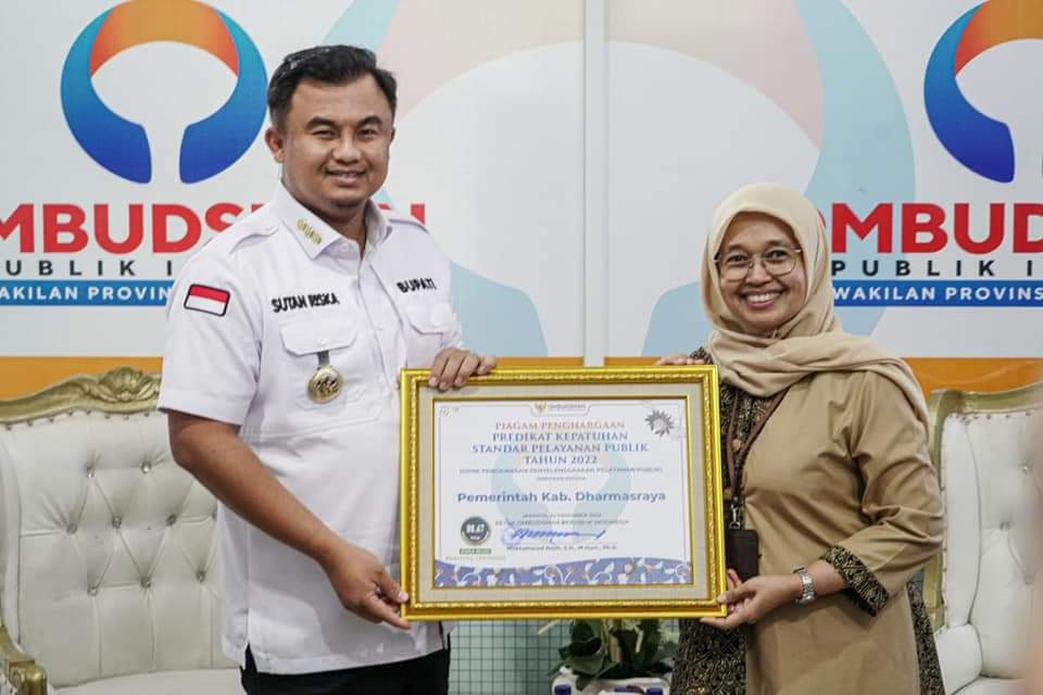 Atas keberhasilan itu, Bupati Dharmasraya, Sutan Riska Tuanku Kerajaan, menerima sertifikat penghargaan, yang diserahkan Kepala Ombudsman RI Perwakilan Sumatera Barat, Yefri Hariani, Rabu (01/02/2023) di Padang.