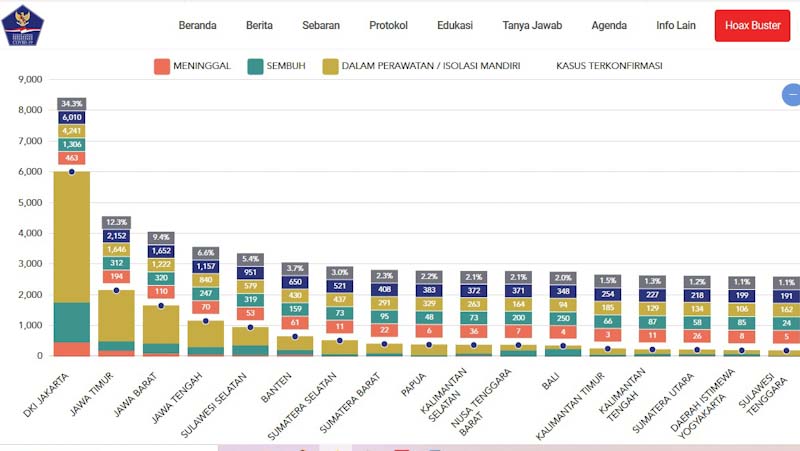 Kasus terbanyak, masih ditempati DKI Jakarta, kemudian disusul Jawa Timur, Jawa Barat, Jawa Tengah, Sulawesi Selatan, Banten, Sumatra Selatan dan Sumatra Barat. Dua daerah lain di bawah Sumbar adalah Papua dan Kalimantan Selatan.