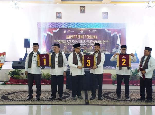 Langgam.id – KPU Padang Panjang telah menetapkan nomor urut pasangan calon (paslon) Wali Kota dan Wakil Wali Kota untuk Pilkada 2024. Penetapan ini dilakukan pada Sidang Pleno Terbuka, Senin (23/9/2024) di Auditorium Mifan.