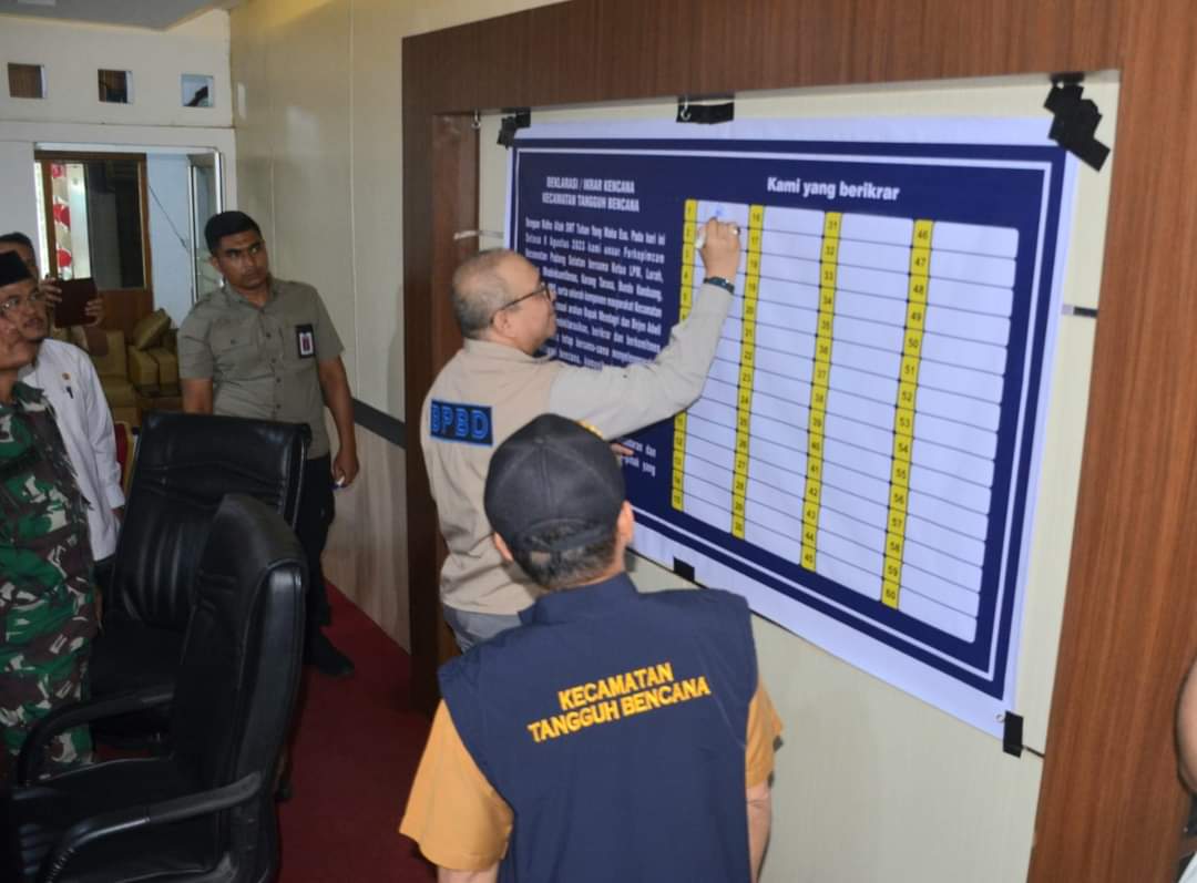 Deklarasi ditandai dengan dilakukannya penandatanganan Ikrar Kecamatan Tangguh Bencana (Kencana) oleh Sekda Andree Algamar bersama Kabag Tata Pemerintahan Yuska Libra Fortuna, Camat Padang Selatan Jasman beserta unsur Forkopimca, para Lurah hingga insan kebencanaan dan elemen masyarakat di kecamatan setempat.