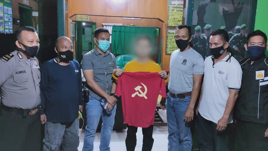Menurut Komandan Kodim 0306/50 Kota Letkol Kav Ferry Lahe, pria itu diamankan pada Selasa (30/6/2020) sekitar pukul 19.10 WIB. Sebelumnya, salah seorang warga melihat pria tersebut mengenakan baju kaos berlogo palu arit yang kemudian dilaporkan ke Babinsa.