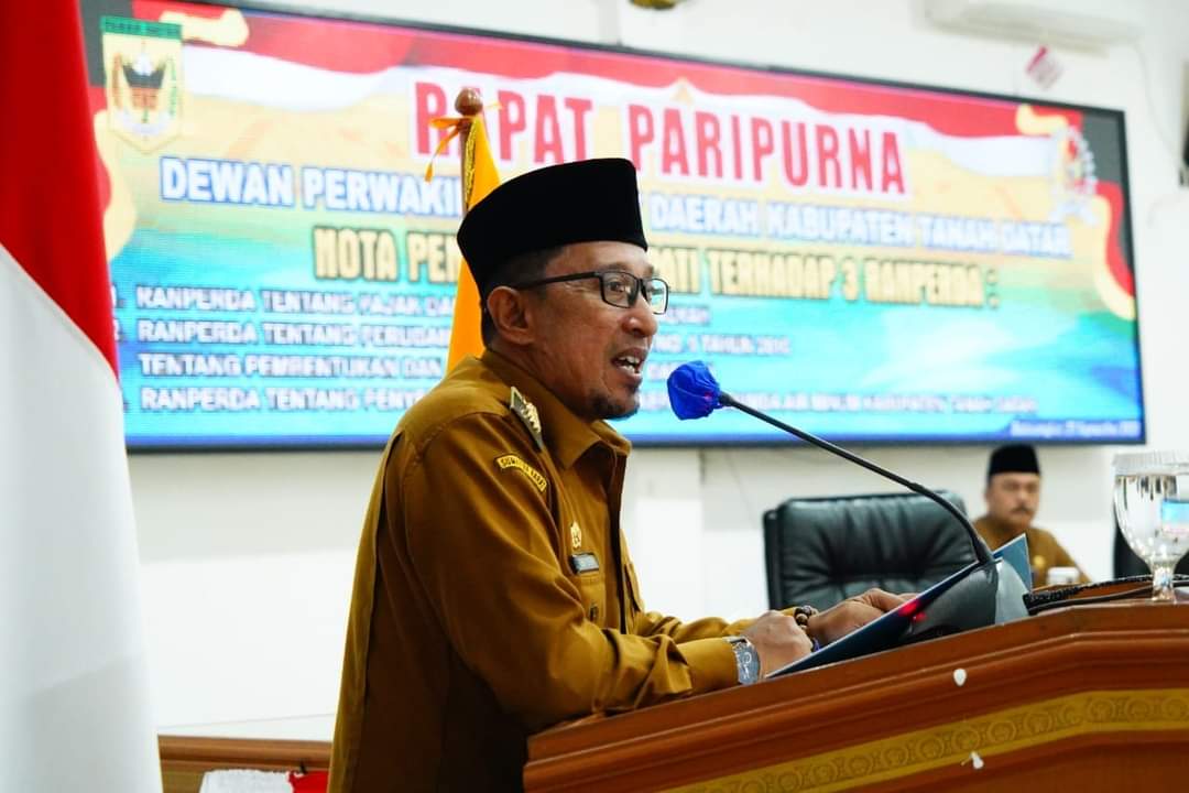 Langgam.id – Bupati Tanah Datar Eka Putra, menyampaikan Nota Penjelasan atas 3 Rancangan Peraturan Daerah (Ranperda) pada Rapat Paripurna Dewan Perwakilan Rakyat Daerah (DPRD) Tanah Datar, yang digelar pada Senin (25/9/2023) kemaren.
