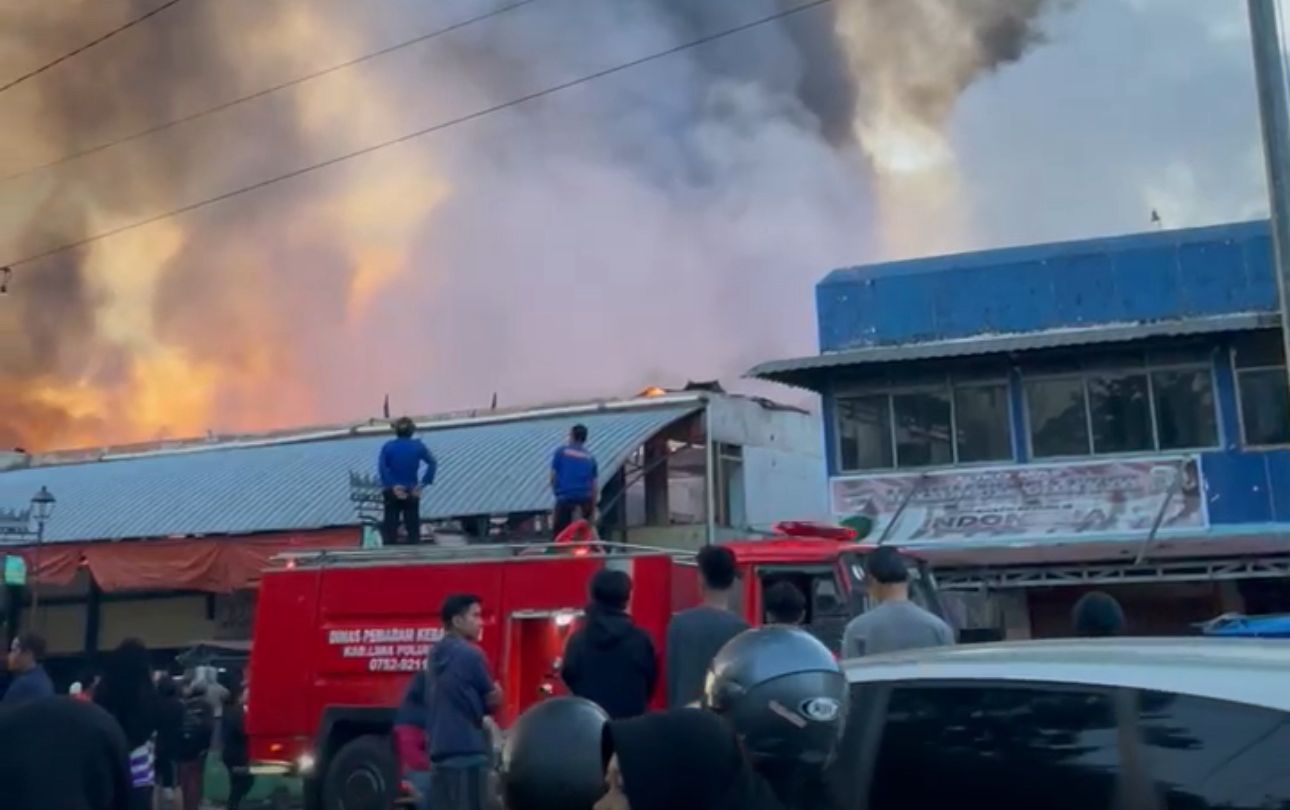 Langgam.id- Kebakaran terjadi di Pasar Payakumbuh, Selasa (26/8/2025). Api masih berkobar di lokasi.