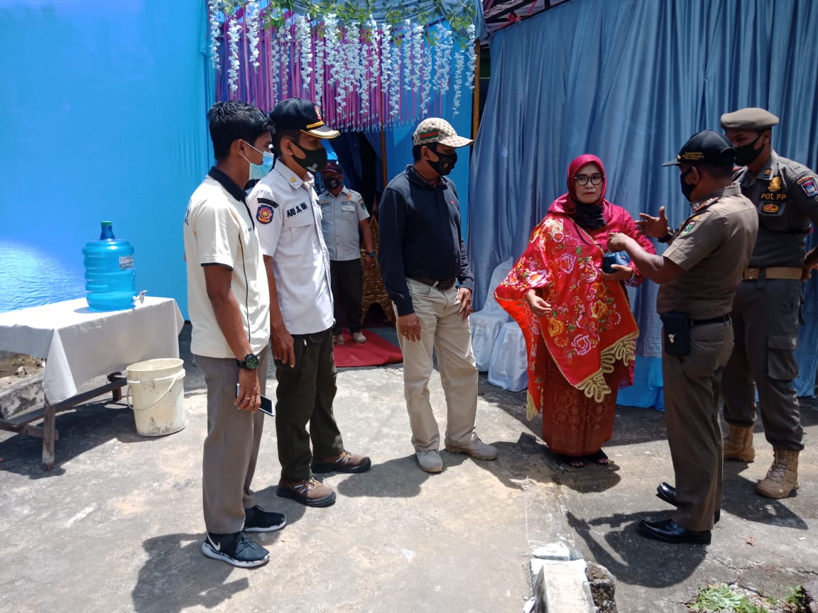 Langgam.id – Tim gabungan Satpol PP Padang bersama Satpol PP Provinsi Sumatra Barat (Sumbar) mendatangi lokasi kegiatan pesta pernikahan yang di gelar oleh warga di kawasan Kuranji Kota Padang Sumbar, Sabtu (17/10/2020).