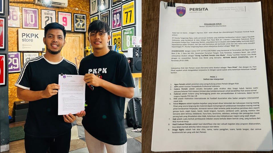 Langgam.id – Satu pemain Persikopa Kota Pariaman, Reyhan Bagus Syahputra, direkrut oleh klub Persita Tangerang. Reyhan pun sudah menandatangani perjanjian kontrak kerja dengan klub tersebut pada Kamis (1/8/2024).
