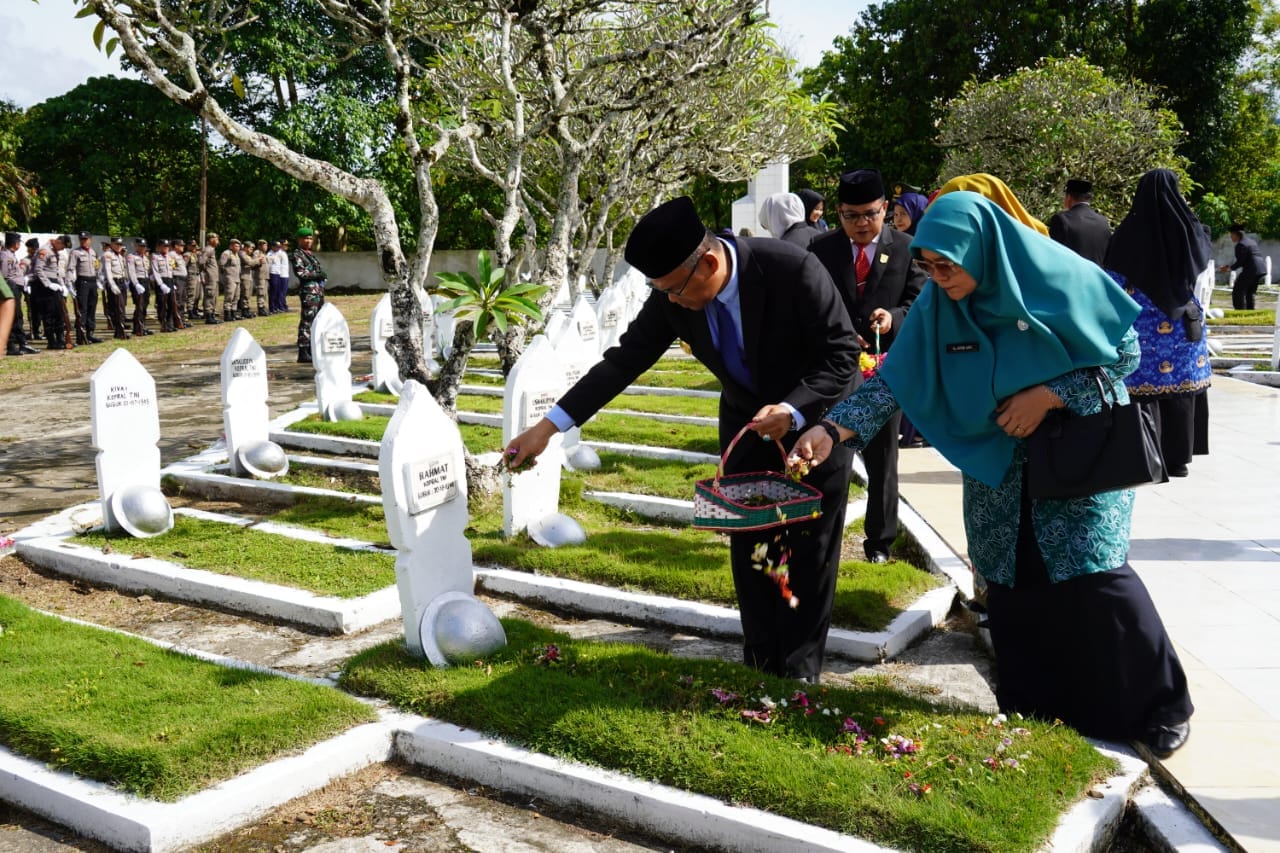 Setelah upacara di Lapangan Cindua Mato, Pjs. Bupati dan rombongan melanjutkan kegiatan dengan ziarah ke Taman Makam Pahlawan Bahagia Batusangkar, menghormati jasa para pahlawan yang telah berkorban bagi bangsa dan negara. (*/Yh)