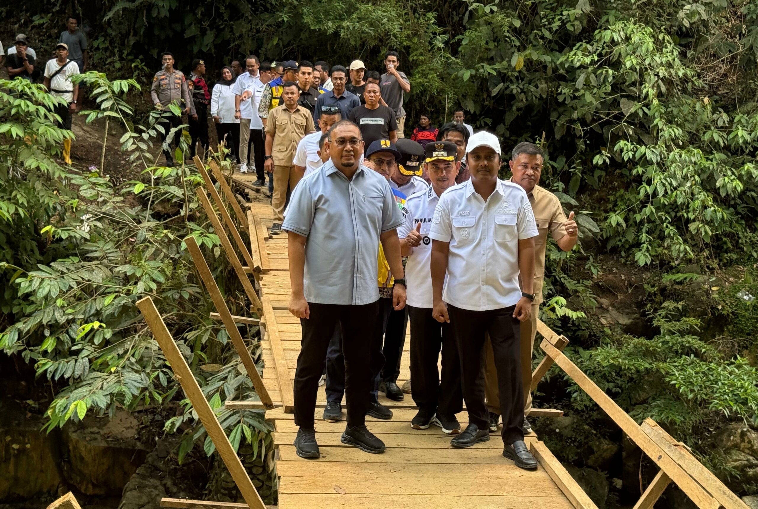 “Kita atas nama Pemkab dan masyarakat Pasaman mengucapkan terima kasih kepada bapak Presiden Prabowo Subianto, pak Andre dan pak Wagub Vasko hadir sampai ke titik lokasi dimana buk Dona menyeberangi sungai menjalankan tugasnya sebagai seorang nakes. Mari bersama-sama kita dukung pembangunan ini nanti agar lancar dan sesuai harapan kita bersama,” harapnya.