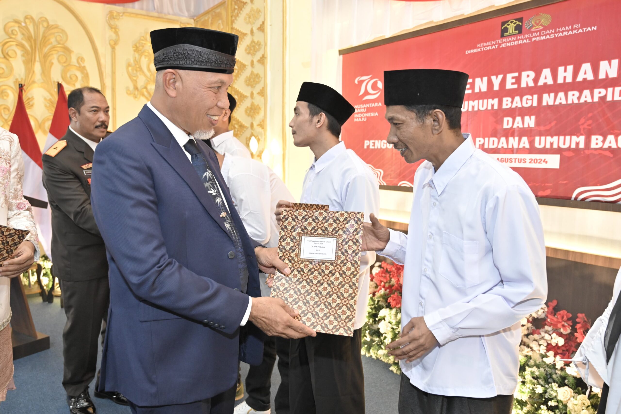 “Dengan penuh rasa syukur dalam memperingati hari HUT RI ke-79, pemerintah memberikan penghargaan berupa remisi bagi narapidana dan pengurangan masa pidana bagi anak binaan yang telah menunjukkan kontribusi, prestasi, dan disiplin yang tinggi dalam mengikuti program pembinaan,” kata Mahyeldi saat membacakan sambutan Menteri Hukum dan HAM di Lembaga Permasyarakatan (Lapas) Klas IIA Padang, dikutip Minggu (18/8/2024).